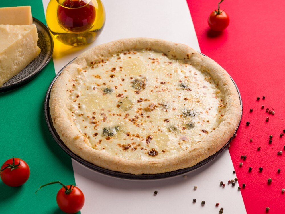 сыр Моцарелла, сыр Таледжио, сыр Горгонзола, сыр Пармезан, сливки, оливковое масло